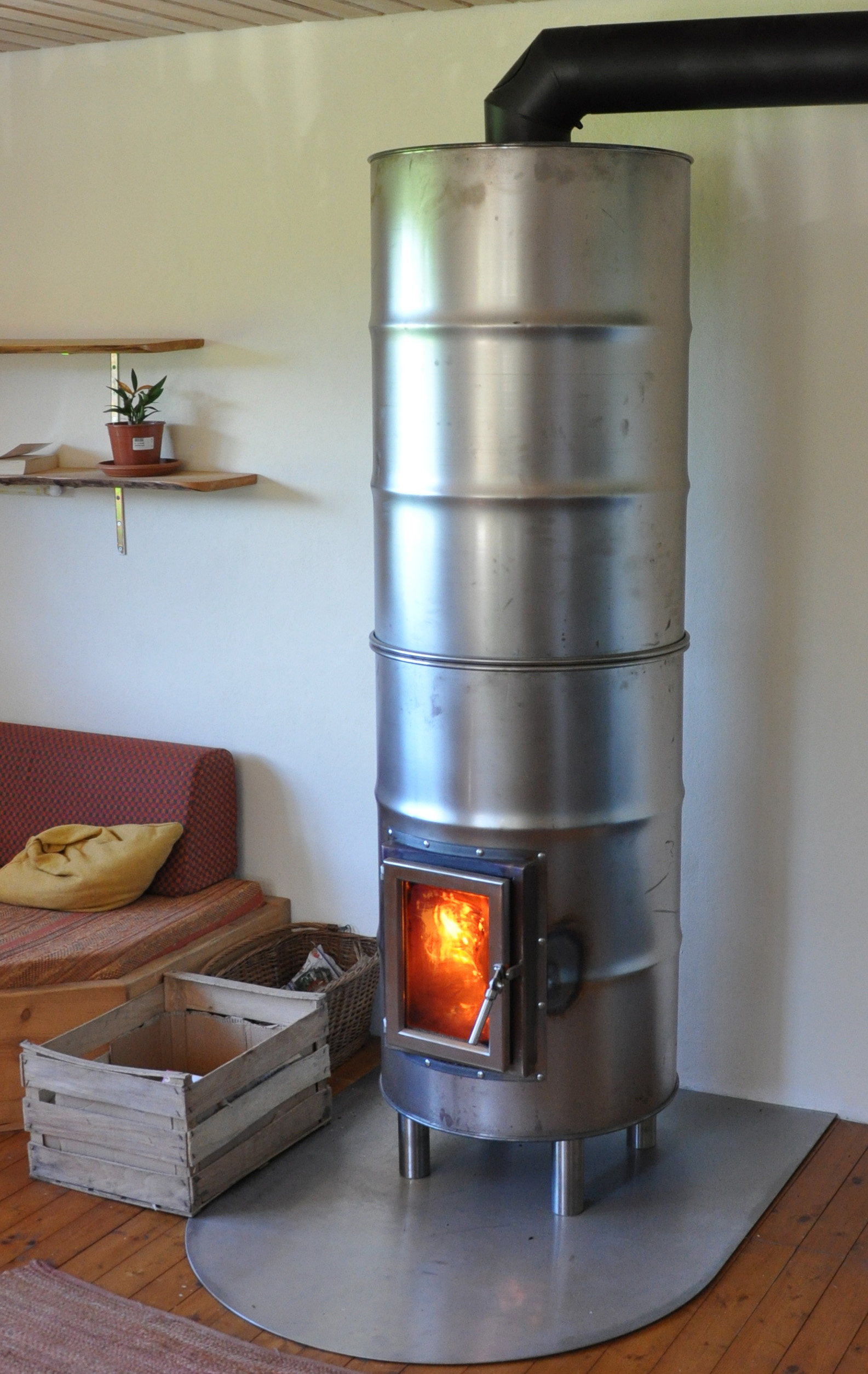Dadurch, dass die Speichertonne die Wärme aufnimmt und langsam wieder abgibt, brauchen Sie nicht ständig "nachzulegen". Das spart viel Holz. Das Prinzip wird hier erklärt.